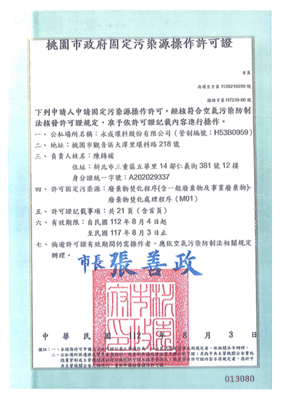 廢棄物處理許可證
