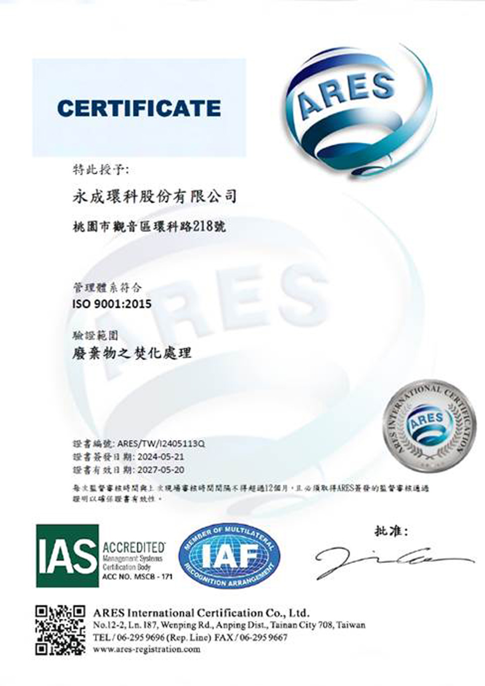 甲級處理與ISO證書