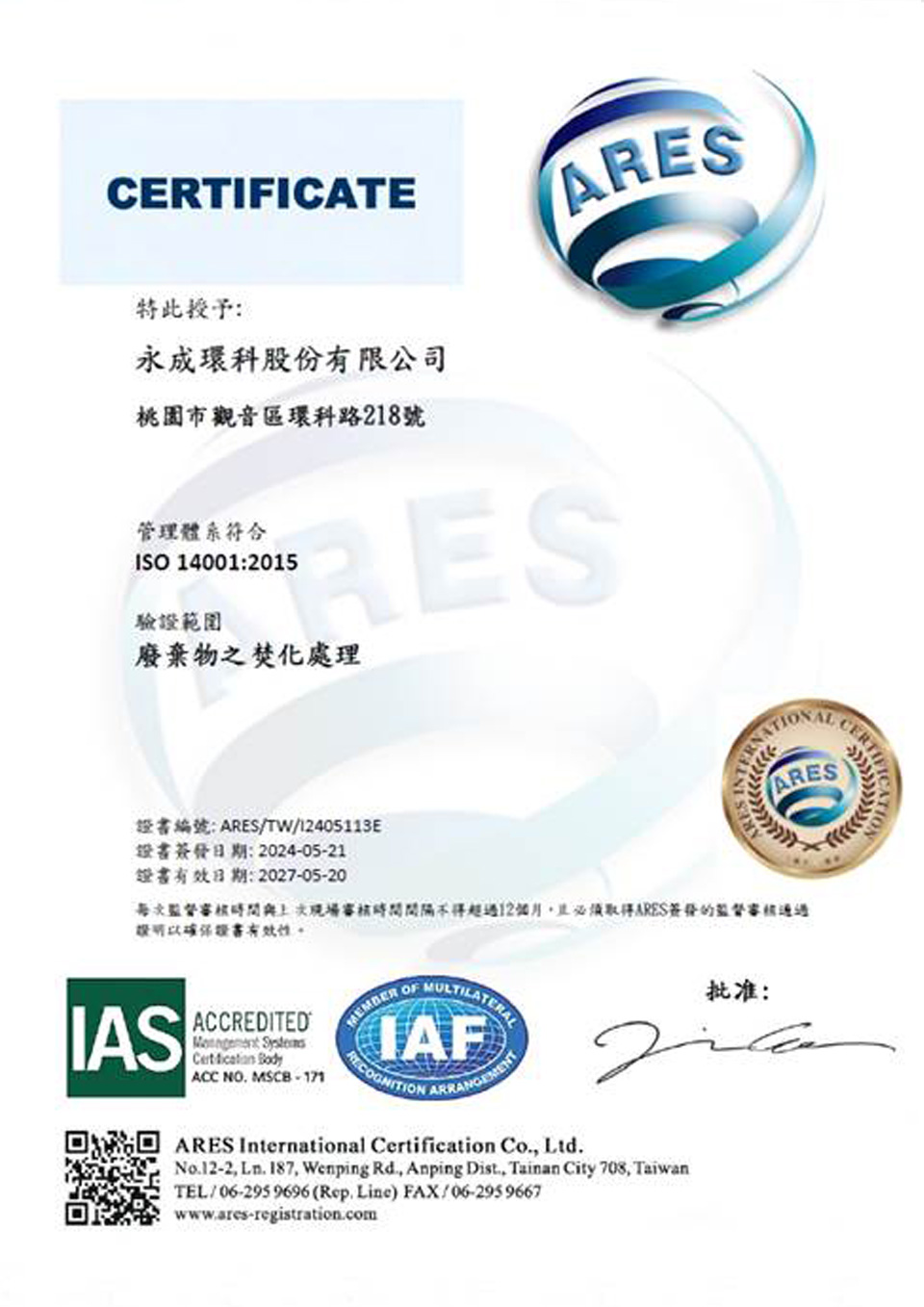資格證照 : 甲級廢棄物處理機構